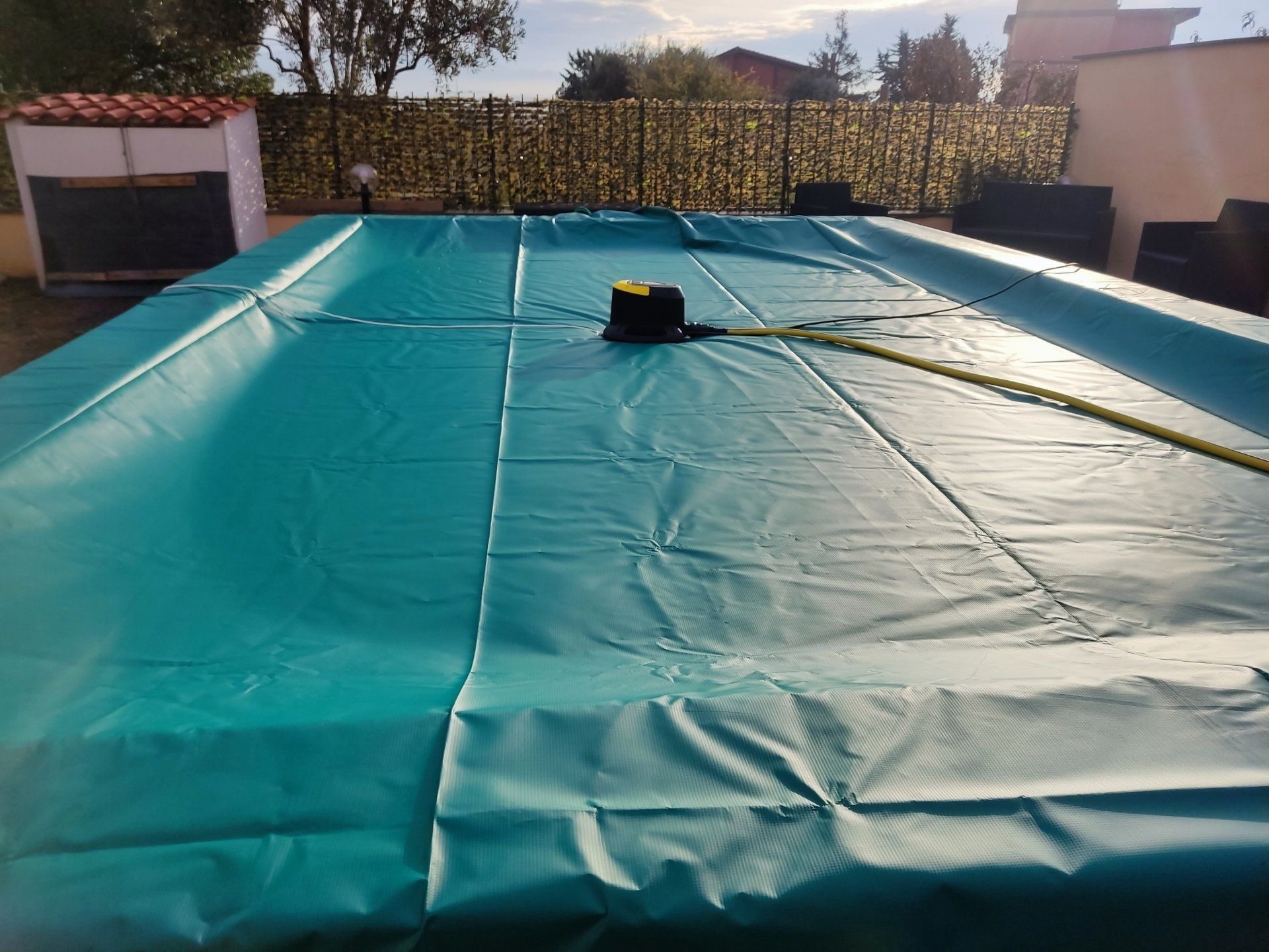 Per proteggere la piscina durante l’inverno la copertura invernale realizzata su misura qualsiasi sia la forma della vostra piscina, in fabrene o polietilene rinforzato colore verde/nero, con varie grammature al metro quadrato. Due modalità di ancoraggio: con occhielli e corda elastica o con fasce e serbatoi. Con la copertura invernale di grande aiuto sarà l’elettropompa sommergibile automatica Eurocover per rimuovere l’acqua piovana dalla superficie del telo.